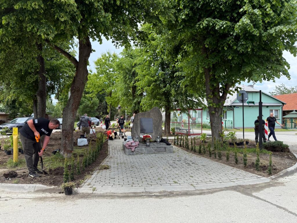 W dniu dzisiejszym wykonano kolejny etap realizacji skwerku Ofiar Katynia w Damienicach. Dotychczasowe prace udało się zrealizować dzięki wsparciu Pana Wójta Gminy Bochnia – Marka Bzdeka, oraz wspaniałej pracy firmy Mar-ziem, kierowanej przez Marka Dylowicza.Podziękowania kierujemy do Pana Józefa Dylowicza, Rady Sołeckiej jak również do Pana Radnego Stanisława Cefal i jego córki za dostawę pięknych lawend oraz pomoc w ich sadzeniu.
